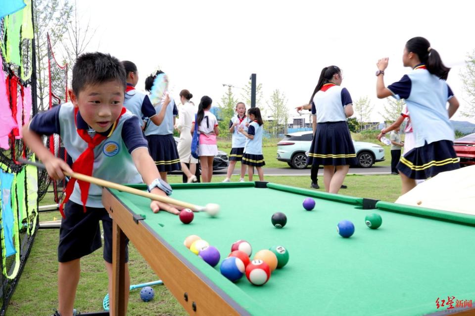 当天,国际世界运动会协会首席执行官约阿希姆·高索出席揭牌仪式,并与成都东部新区三岔湖小学学生现场互动。